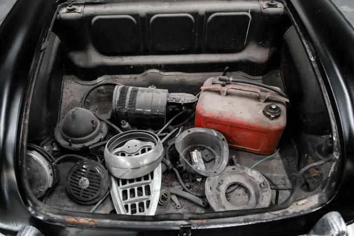 This 1961 Alfa Giulietta Spyder had a restoration started in 1978. Rust was removed with correct sheet metal was installed. Engine rebuild and the front suspension was rebuilt. Car currently is straight with good gaps and solid body panels, floorboards,and trunk floor.